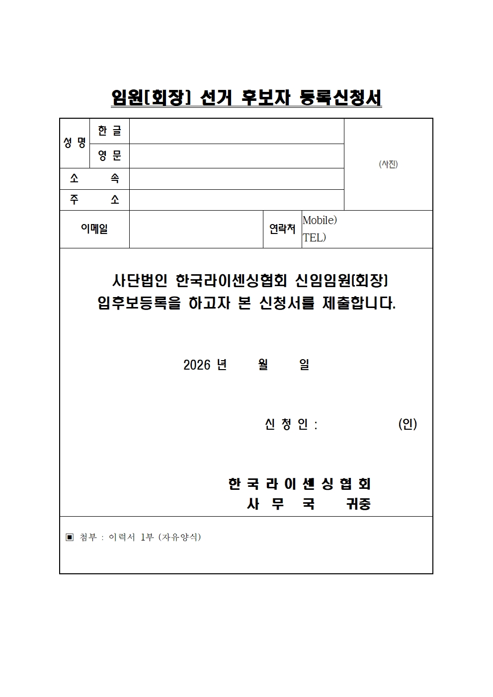 1. 붙임. 입후보등록신청서 양식 1부